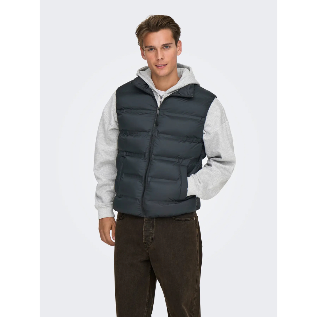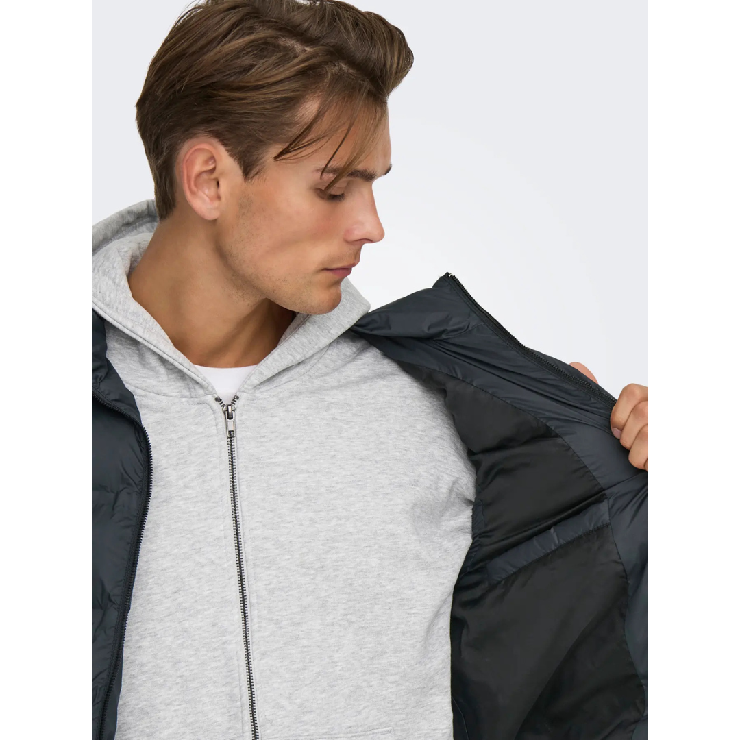 Muški prsluk ONSUNION SEAMLESS LIFE PUFFER VEST OTW kombinuje praktičnost, stil i održivost. Savršen je izbor za prelazne sezone, kada je potrebna dodatna toplina bez ograničavanja pokreta. Izrađen je od recikliranog poliestera koji pruža udobnost, izdržljivost i doprinosi očuvanju životne sredine. Zahvaljujući visokoj kragni i laganom pufnastom punjenju, obezbeđuje zaštitu od vetra i hladnoće, dok klasičan dizajn čini da se lako kombinuje uz svakodnevne odevne komade.