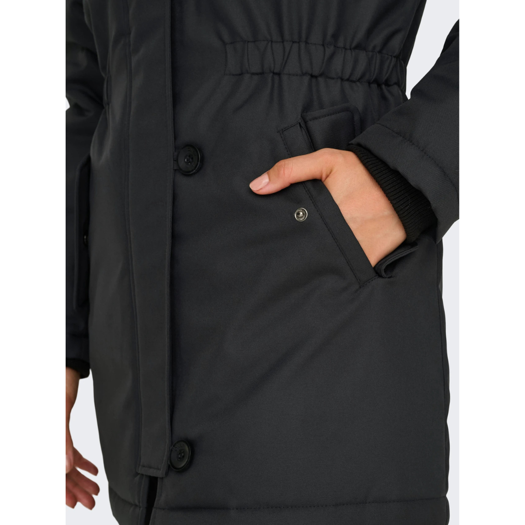 Pripremite se za zimu sa ONLIRIS dugom ženskom jaknom koja kombinuje stil i funkcionalnost. Ova parka ima kapuljaču sa odvojivim sintetičkim krznom, dugih rukava sa rebrastim manžetnama i dugmadima na prednjim džepovima, što pruža dodatnu udobnost i toplinu. Poliester postava i punjenje obezbeđuju optimalnu izolaciju, dok dugotrajni kvalitet materijala garantuje dugotrajnu upotrebu.